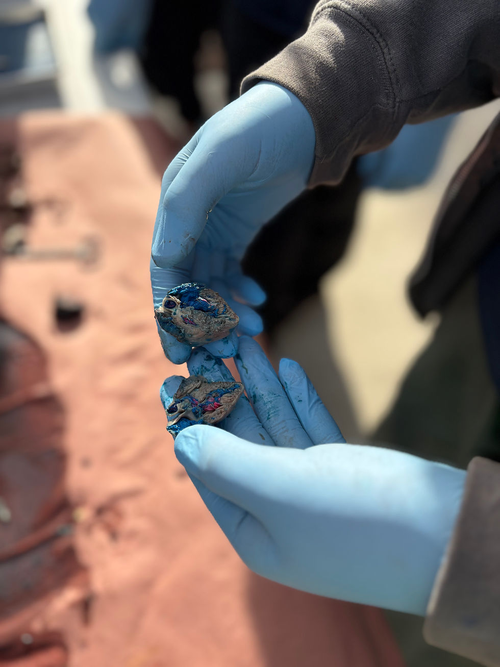 Once prepared, students were given protective eyewear and moved outside for the dissection. Participation was always a choice. Students who were not comfortable observing or taking part were able to remain in the classroom and continue working on their assignment.
