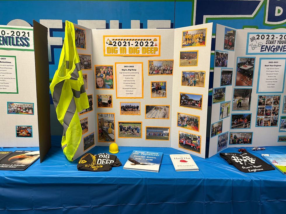Throughout the evening, families viewed science fair projects, 4th-grade light projects, and countless other displays that reflected the curiosity and hard work of our students. As guests left the gym lobby and walked toward the doors leading to the cafeteria, they were able to take a special trip down memory lane. Tables were lined with displays of photos showcasing highlights from our school’s past 10 years, celebrating the growth, memories, and milestones that have shaped our campus. It was a meaningful way for families, students, and alumni to reflect on how far Burns has come.