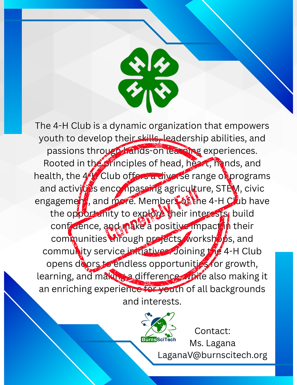 The 4-H Club is a dynamic organization that empowers youth to develop their skills, leadership abilities, and passions through hands-on learning experiences. Rooted in the principles of head, heart, hands, and health, the 4-H Club offers a diverse range of programs and activities encompassing agriculture, STEM, civic engagement, and more. Members of the 4-H Club have the opportunity to explore their interests, build confidence, and make a positive impact in their communities through projects, workshops, and community service initiatives. Joining the 4-H Club opens doors to endless opportunities for growth, learning, and making a difference, while also making it an enriching experience for youth of all backgrounds and interests.