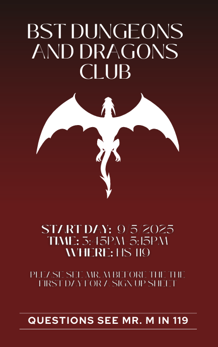 Step into a world of imagination and adventure with our Dungeons and Dragons Club! Whether you’re a seasoned player or new to the game, this club offers the chance to create your own character, join a party of fellow adventurers, and embark on epic quests filled with mystery, magic, and danger. Every session is a collaborative story where your choices shape the outcome, making each adventure uniquely your own. It’s the perfect blend of strategy, creativity, and teamwork, offering an exciting escape into fantasy realms while forging friendships along the way!