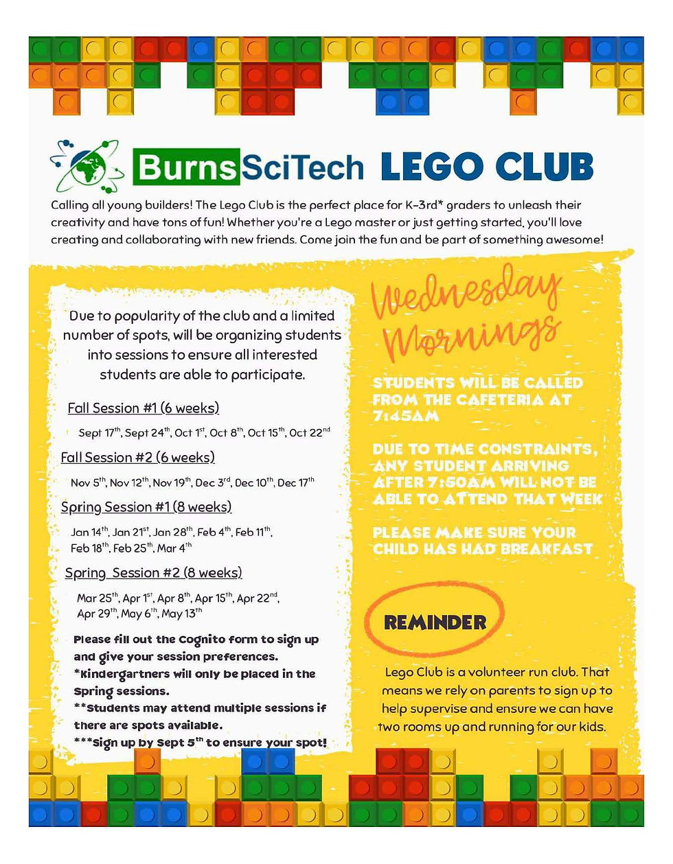 Calling all young builders! The Lego Club is the perfect place for K-3rd graders to unleash their creativity and have tons of fun! Every week, you'll get the chance to build incredible structures, tackle fun challenges, and explore your imagination brick by brick. Whether you're a Lego master or just getting started, you'll love creating and collaborating with new friends. Come join the fun and be part of something awesome!